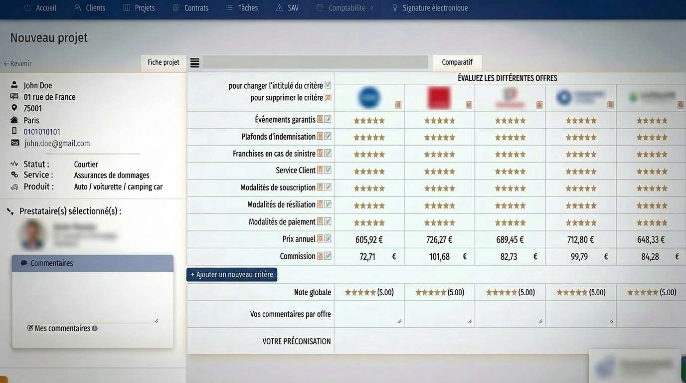 Recevez automatiquement plusieurs propositions détaillées après avoir décrit le besoin client. Comparez les services, la réputation et les avis de chaque fournisseur, les tarifs et vos gains en cas de signature.